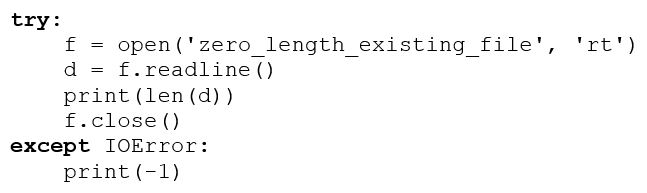 What is the expected output of the following code if the file named zero_length_existing_file is a zero-length file located inside the working directory?