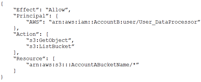 A retail company needs to provide a series of data files to another company, which is its business partner. These files are saved in an Amazon S3 bucket under Account A, which belongs to the retail company. The business partner company wants one of its IAM users, User_DataProcessor, to access the files from its own AWS account (Account B).