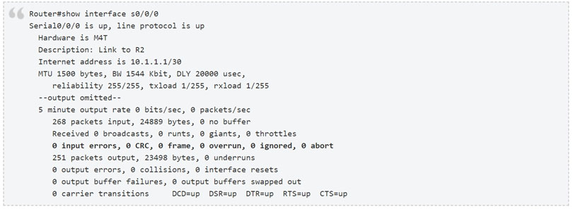 The output below show the interface counters with the ג€show interface s0/0/0ג€ command: