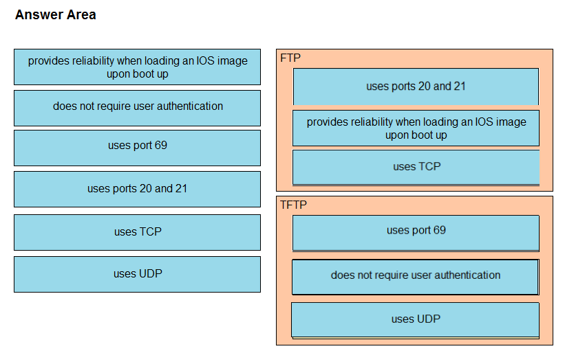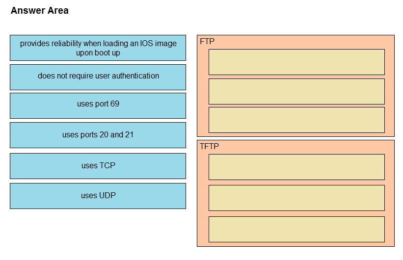 Drag and drop the descriptions of file-transfer protocols from the left onto the correct protocols on the right.