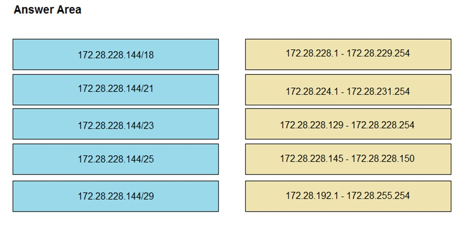 Drag and drop the IPv4 network subnets from the left onto the correct usable host ranges on the right.