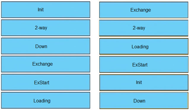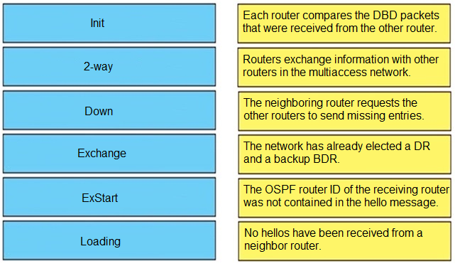 Drag and drop the OSPF adjacency states from the left onto the correct descriptions on the right.