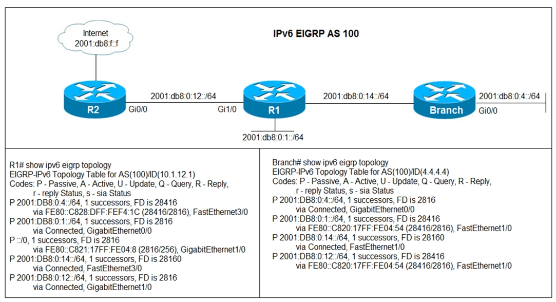 Refer to the exhibit. Users in the branch network of 2001:db8:0:4::/64 report that they cannot access the Internet.