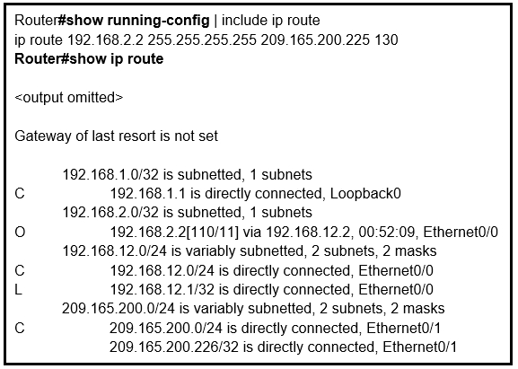 Refer to the exhibit. An engineer configures a static route on a router, but when the engineer checks the route to the destination, a different next hop is chosen.