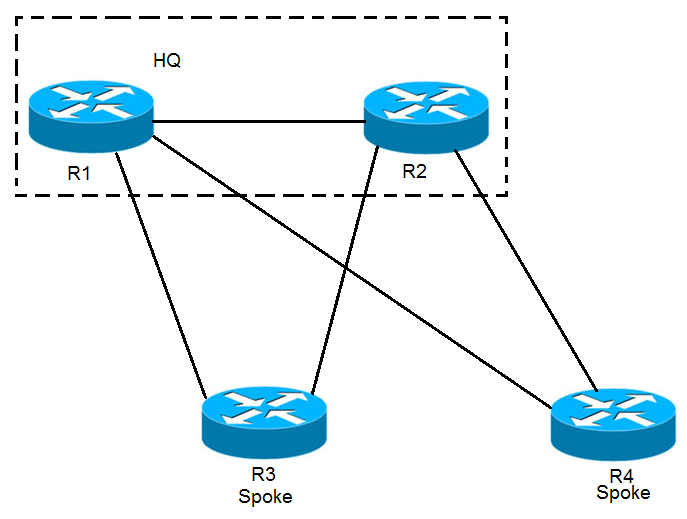 Refer to the exhibit. EIGRP has been configured on all links. The spoke nodes have been configured as EIGRP stubs, and the WAN links to R3 have higher bandwidth and lower delay than the WAN links to R4. When a link failure occurs at the R1-R2 link, what happens to traffic on R1 that is destined for a subnet attached to R2?